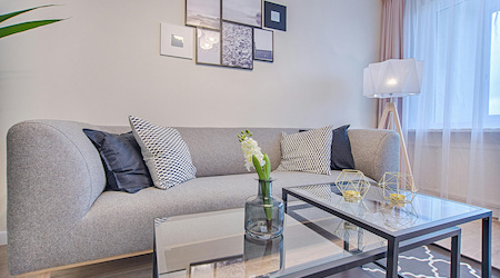 Predominan los colores tendencia en decoración suaves: gris claro, azul pálido y verde menta. Se combinan con textiles cálidos y elementos decorativos funcionales.