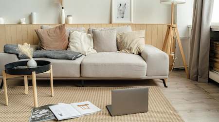 Se caracteriza por colores neutros: blanco, beige y gris. Pueden usarse en muebles o cojines. Los materiales y texturas como la madera clara y el lino refuerzan la sensación de simplicidad.