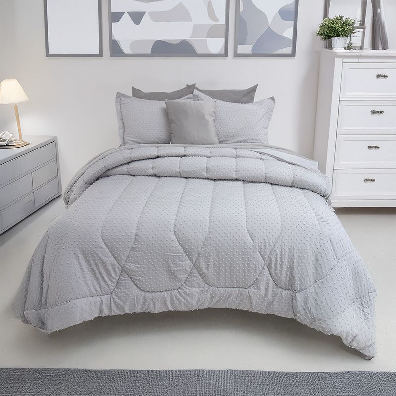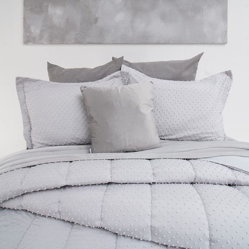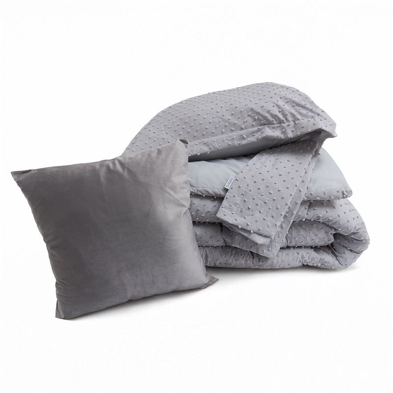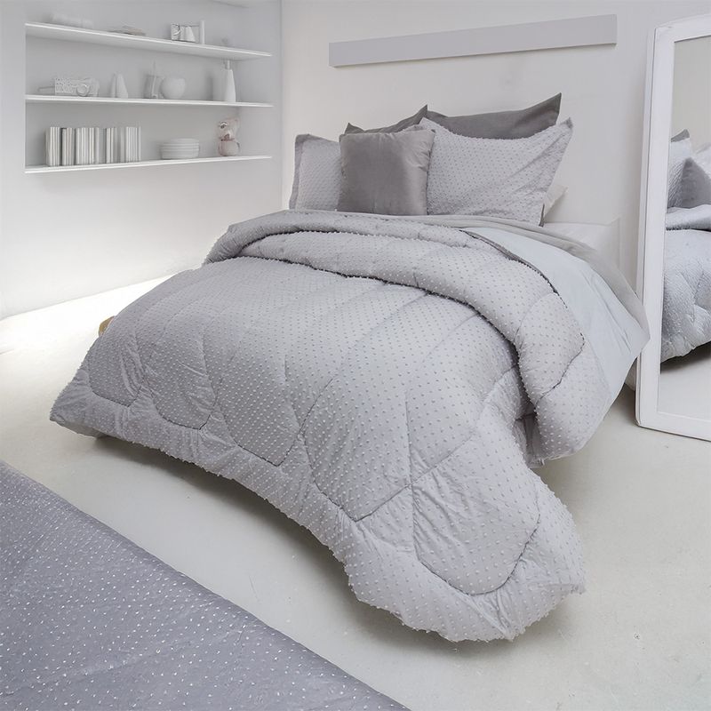 Combo edredón más cojín microfibra jacquard minipuntos gris