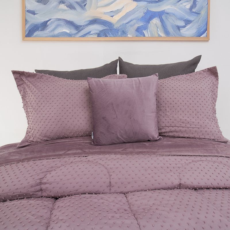 Combo edredón más cojín microfibra jacquard minipuntos malva