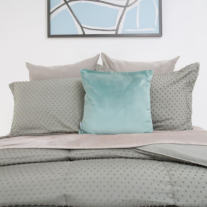 Combo edredón más cojín microfibra jacquard minipuntos verde