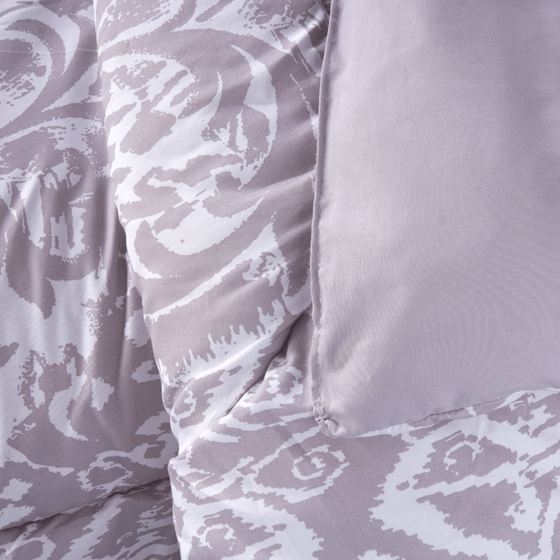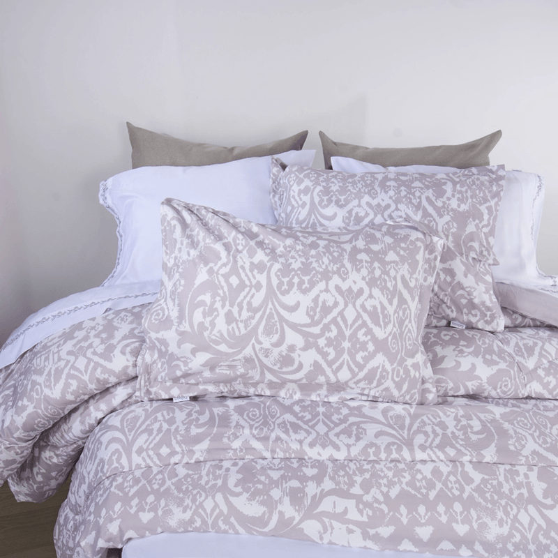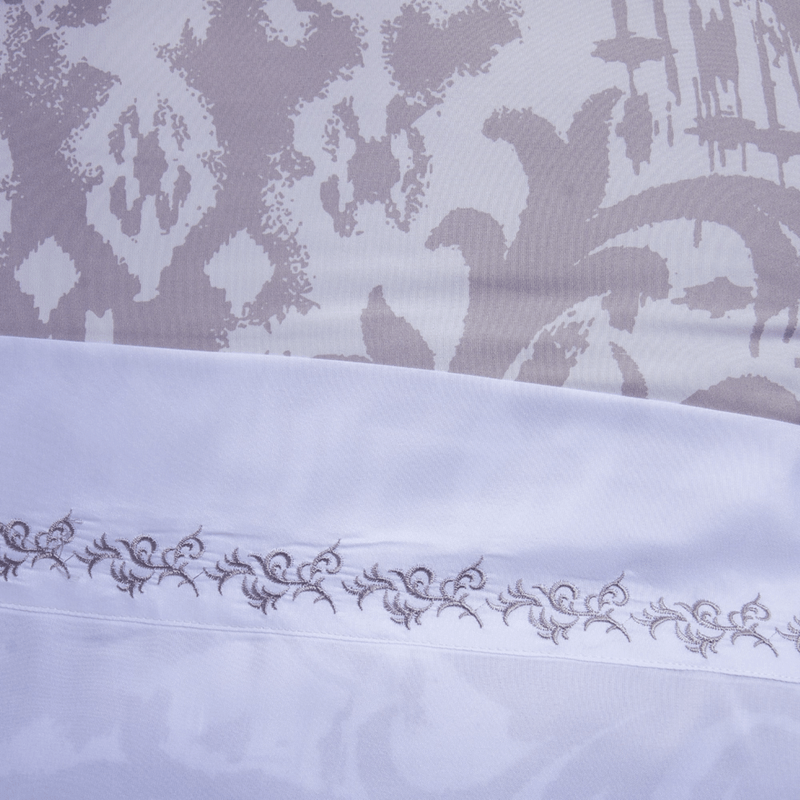 Combo edredón más juego de sábanas bordado kiria malva gris