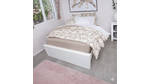 Sencillo: Edredón 160 x 230 cm Fundón 50 x 70 cm Sabana Ajustable 100 x 190 x 28 cm Sabana Plana 166 x 233 cm Funda 50 x