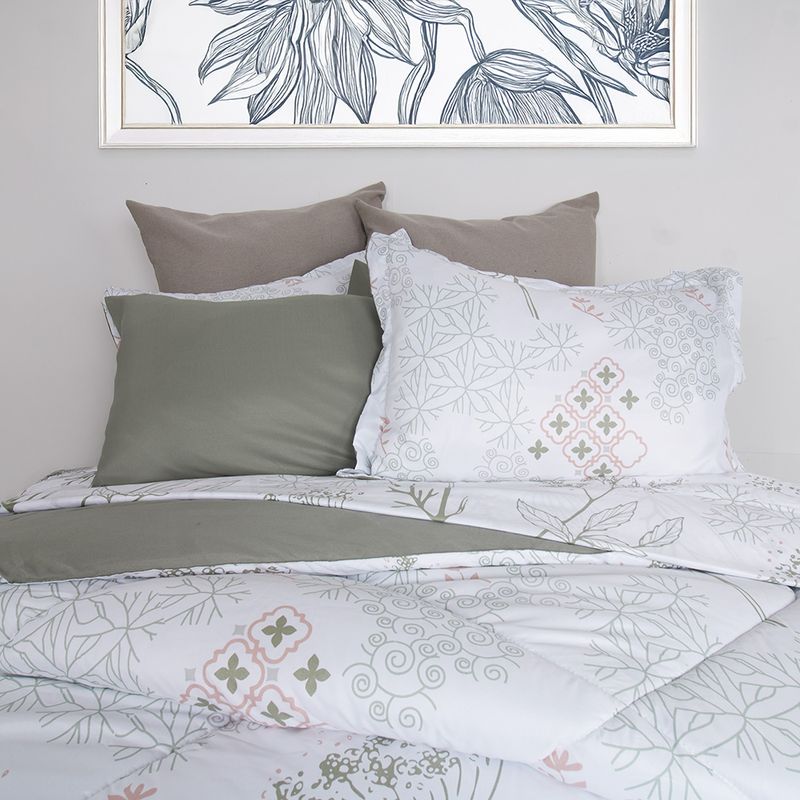 Combo edredón más juego de sábanas estampado sakura/verde sage