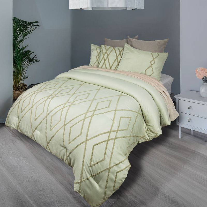 Combo edredón microfibra 85gsm bordado más cojín verde