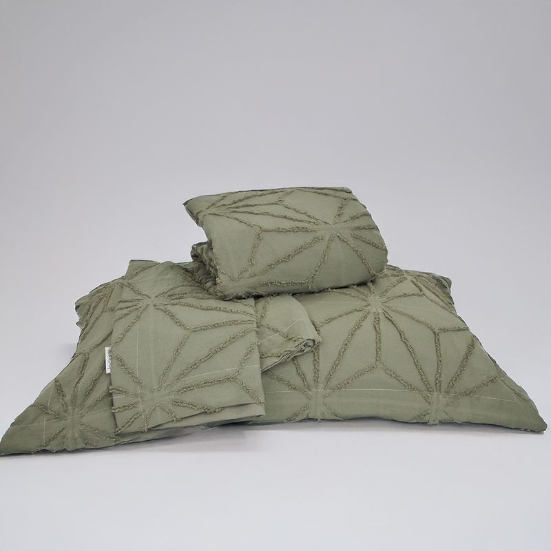 Combo Forro plumón más cojín microfibra jacquard diamante verde