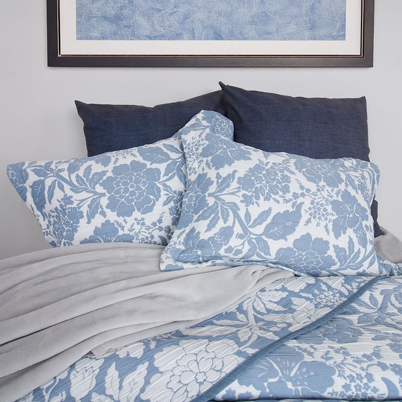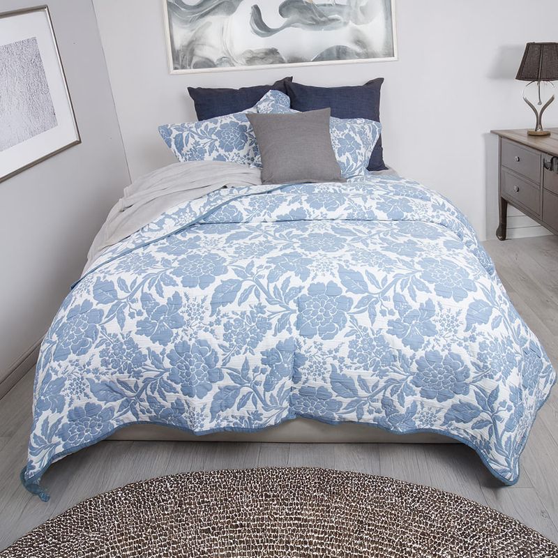 HabitaciónRopa de CamaCubrecamasCubrecama jacquard flores azul plomo
