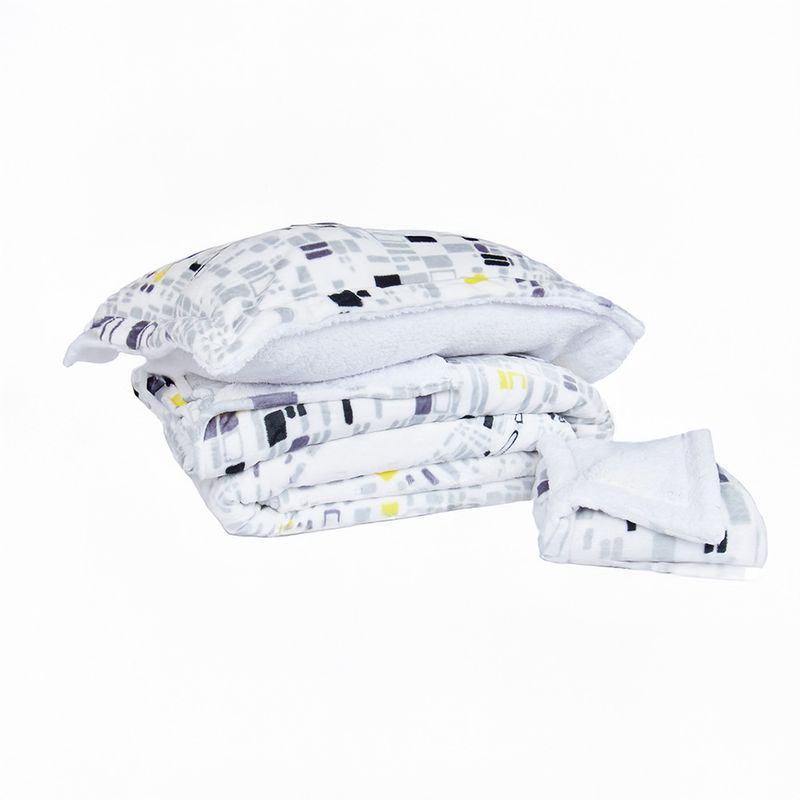 Sencillo: Cubrelecho 180 x 250 cm Fundón 50 x 70 cm Manta 125 x 150 cm Semidoble: Cubrelecho 200 x 250 cm Fundones 50 x 70 cm Manta 125 x 150 cm Doble: Cubrelecho 220 x 250 cm Fundones 50 x 70 cm Manta 125 x 150 cm Extra doble: Cubrelecho 240 x 250 cm Fundones 50 x 70 cm Manta 125 x 150 cm King: Cubrelecho 280 x 250 cm Fundones 50 x 90 cm Manta 125 x 150 cm