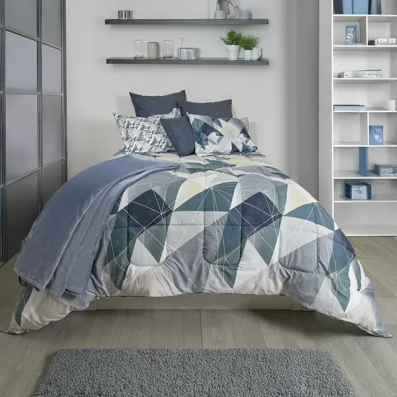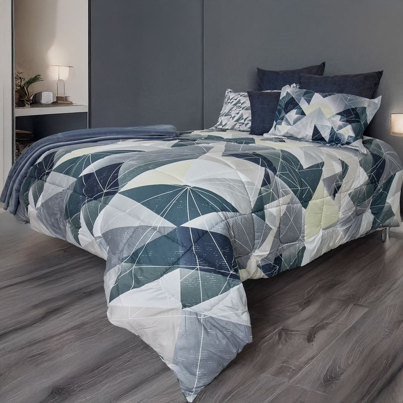 Doble: Edredón 220 x 245 cm Fundones 40 x 60 cm Cojín 40 x 90 cm