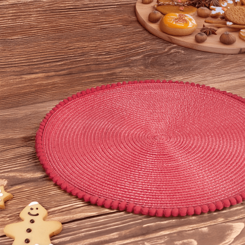 AccesoriosCocinaIndividualesIndividual redondo pp mini pompom rojo