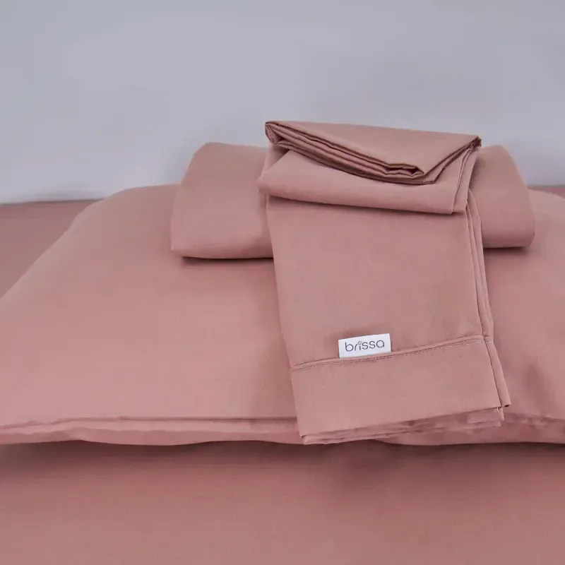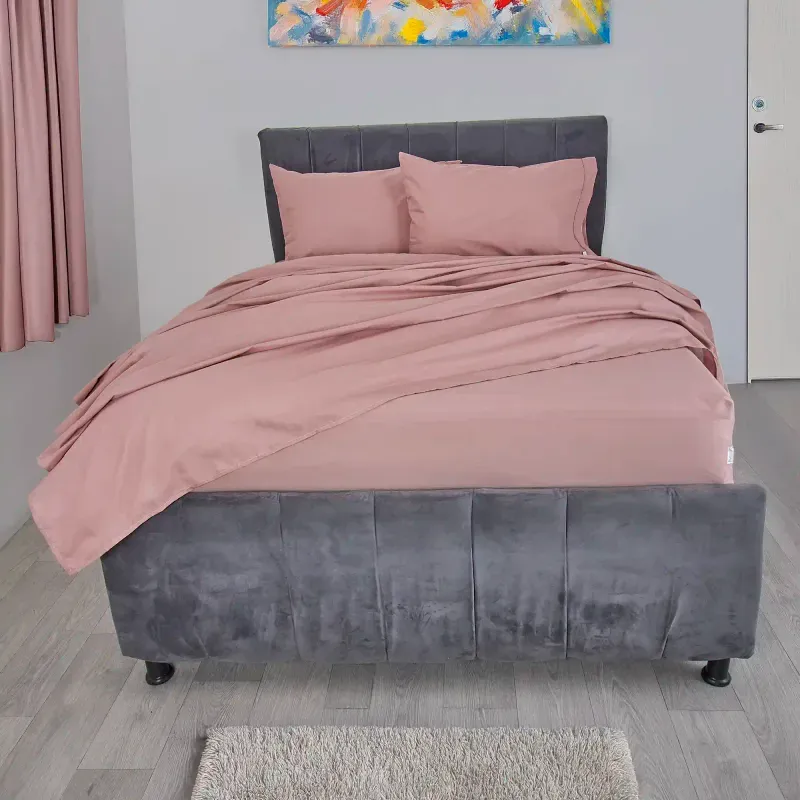 Juego de sábanas tela 144 hilos con embone arce rosado
