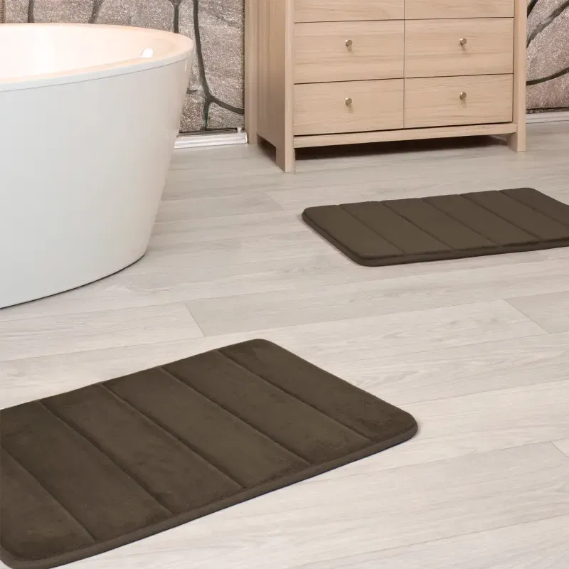 BanoTapetes de BanoSetx2 tapete de baño espuma líneas café 40x60cm