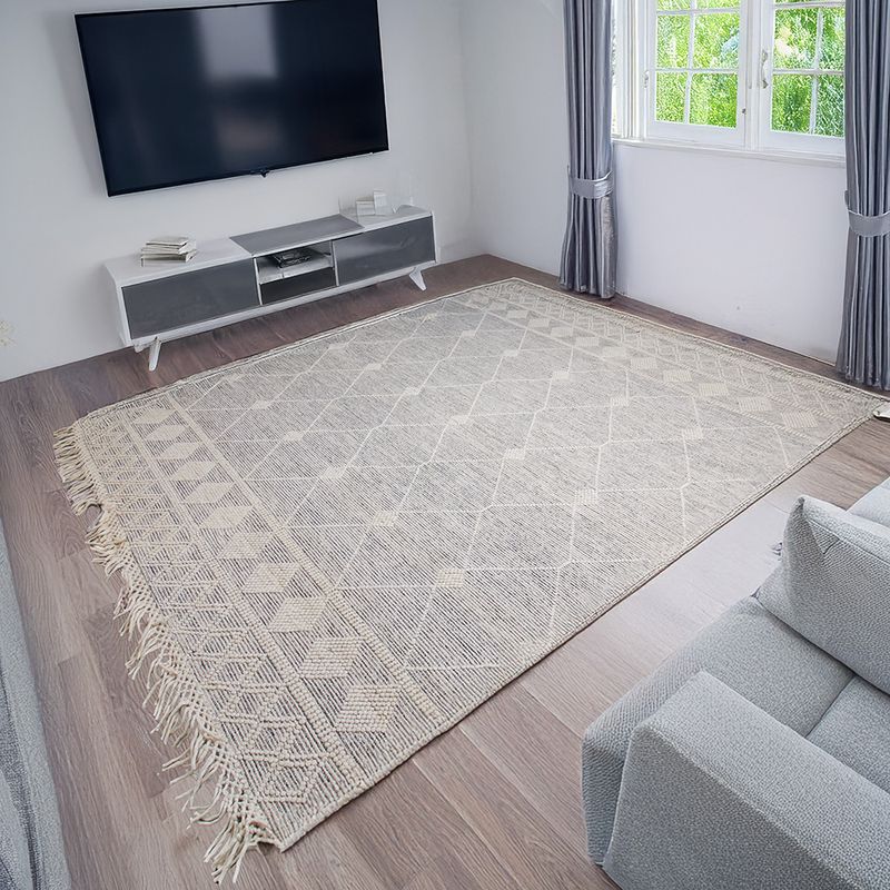 DecoracionTapetesTapete lana algodón tejido geo blanco