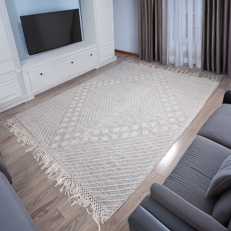 DecoracionTapetesTapete lana algodón tejido piramide blanco